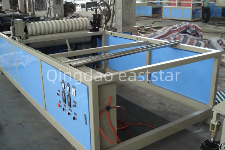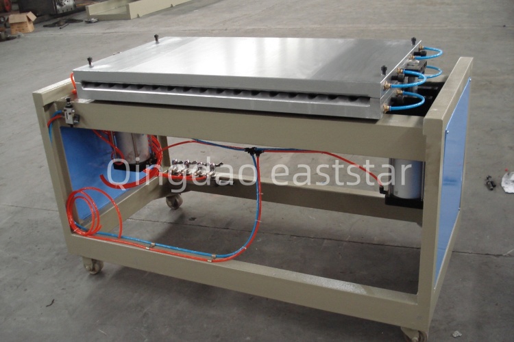 Een 800 mm lange vormmatrijs, gecombineerd met een vacuümadsorptie- en waterkoelingssysteem, zorgt voor nauwkeurige golfstructuurvorming en uniforme koeling. Het tractiesysteem maakt gebruik van styreen-butadieen-rubberrollen, die een maximale trekkracht van 20KN bieden, waardoor het product tijdens de tractie niet vervormt of uitrekt.